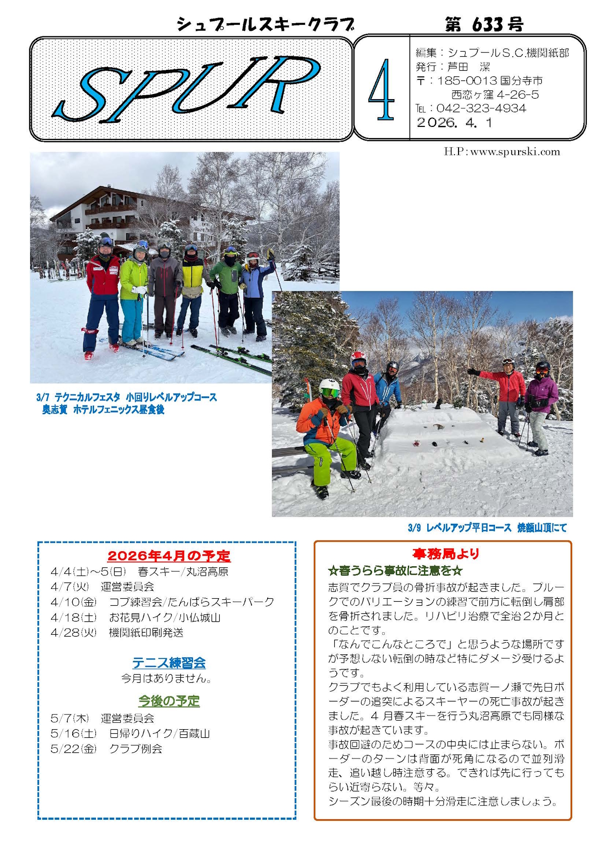 | 今期の行事詳細 お問い合わせは spurskiclub@gmail.com にお願い致します。 |